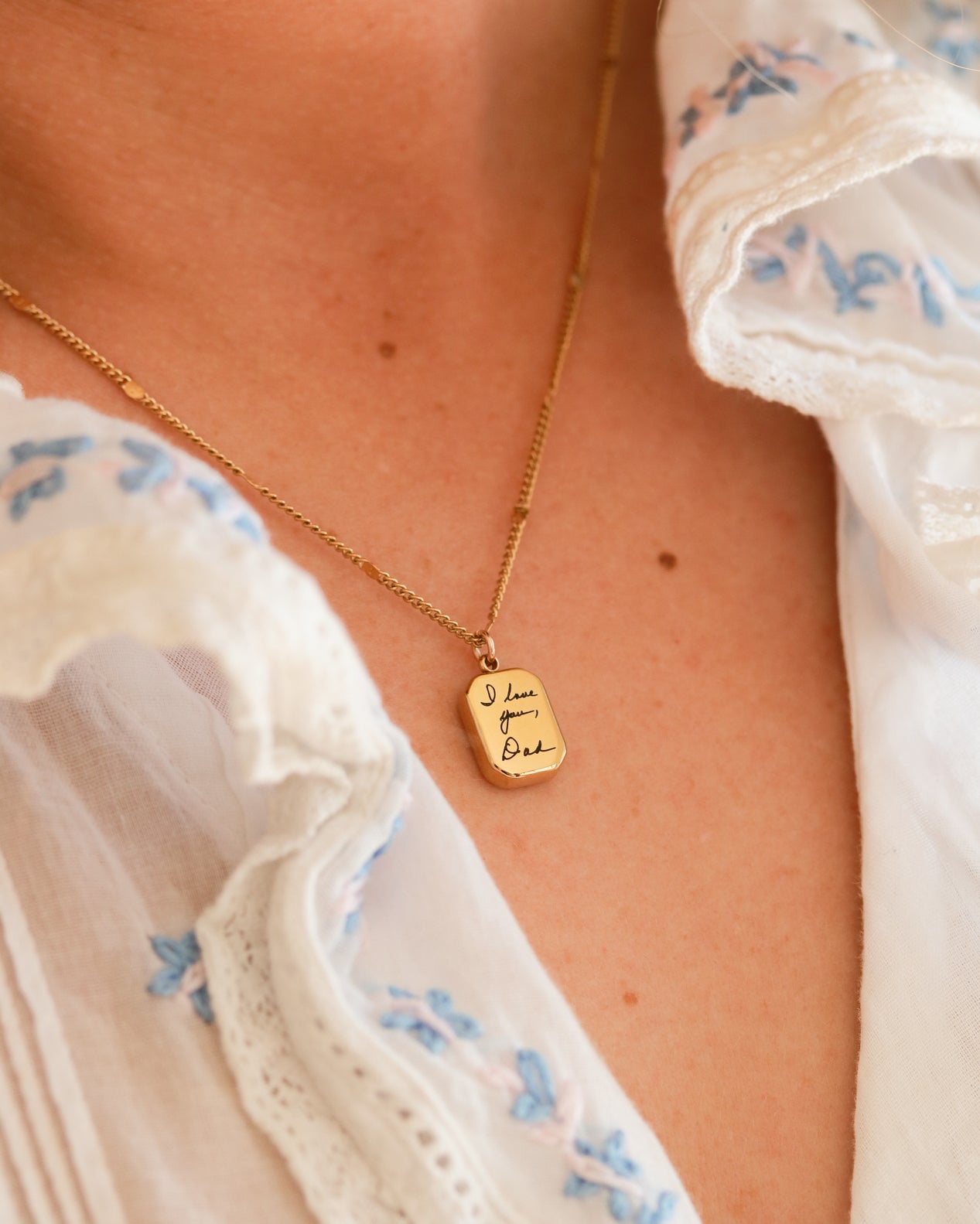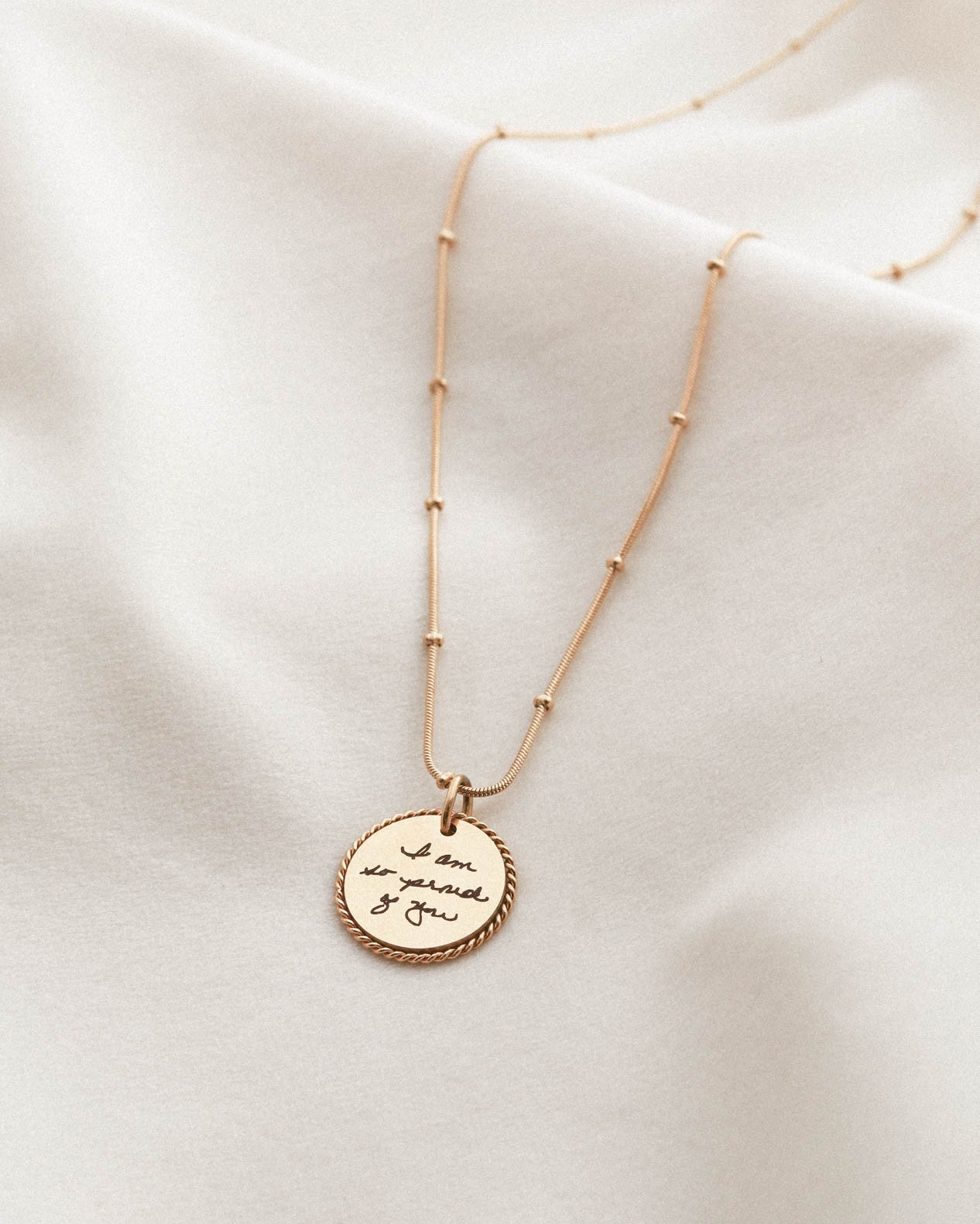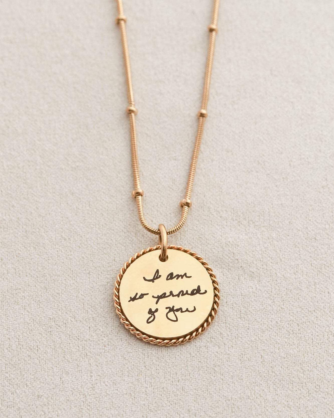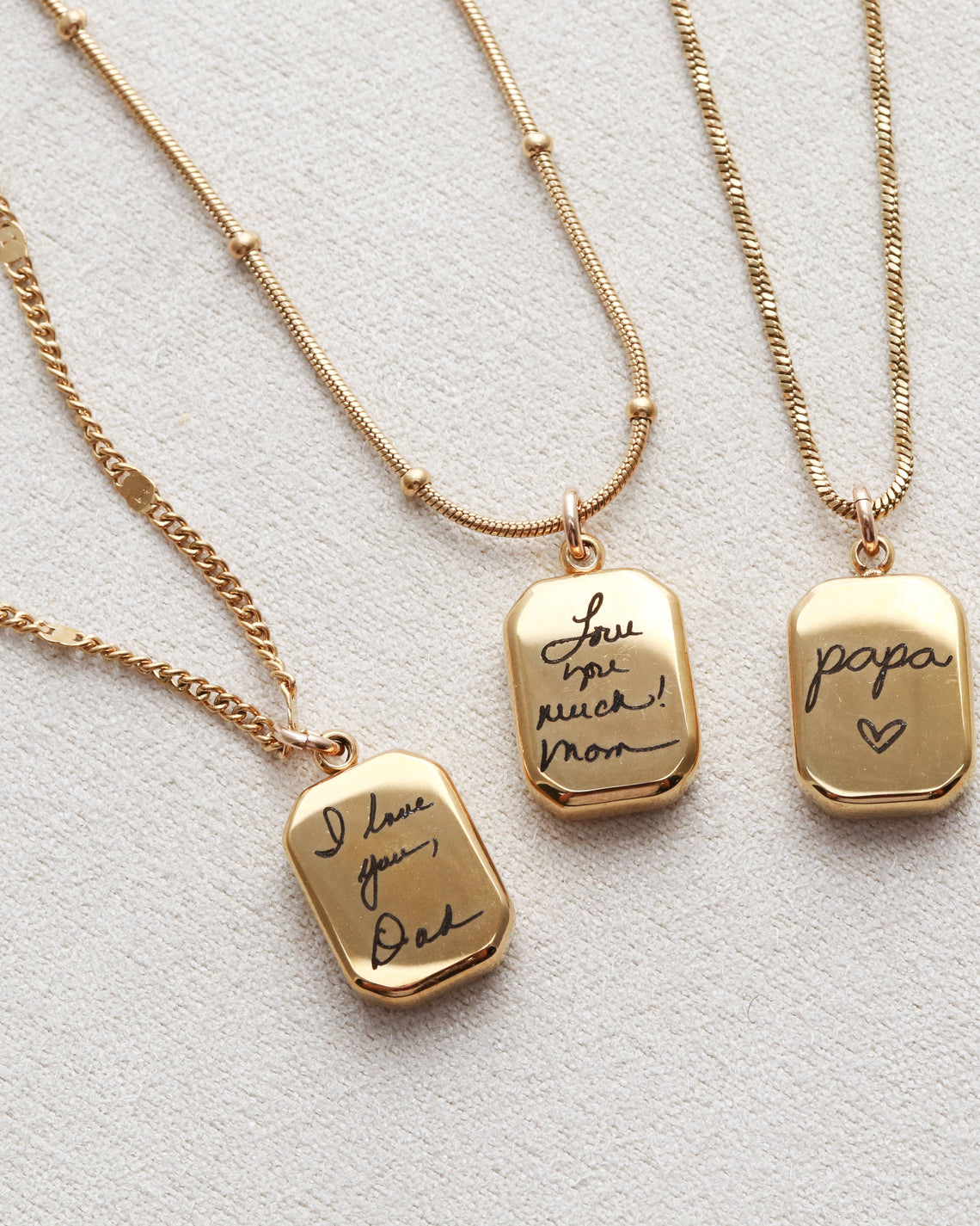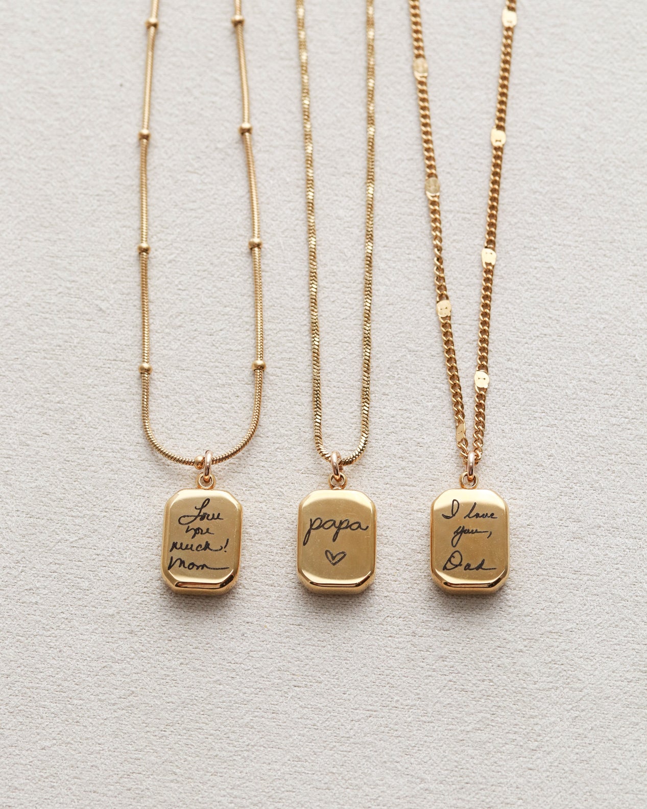 I ordered three necklaces for my sisters and I. The bracelets had our maiden name on it, in our father’s handwriting, and made for a great wedding gift! They are amazing quality and shipping was SO fast! Thank you! Will definitely recommend this shop in the future.