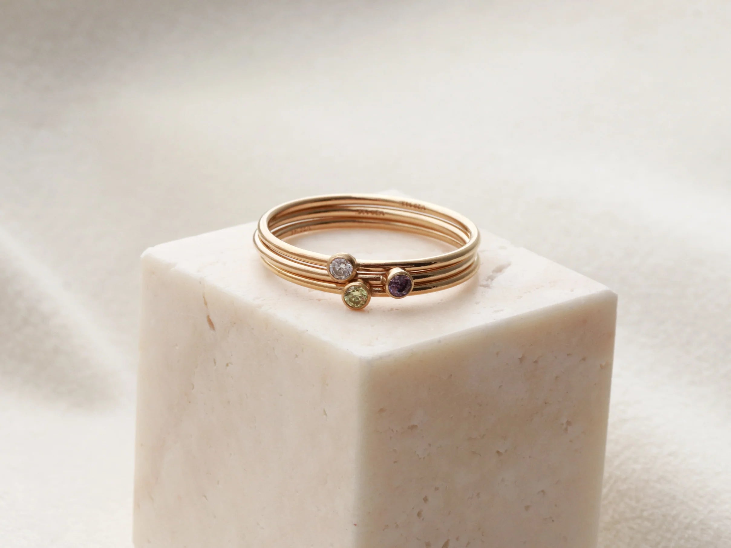 I love these. My husband just passed away and I wanted to have a little something that showed our family birth stones. Both of our girls, him and me without wearing a wedding ring. I love these! Small, delicate, understated but beautiful.