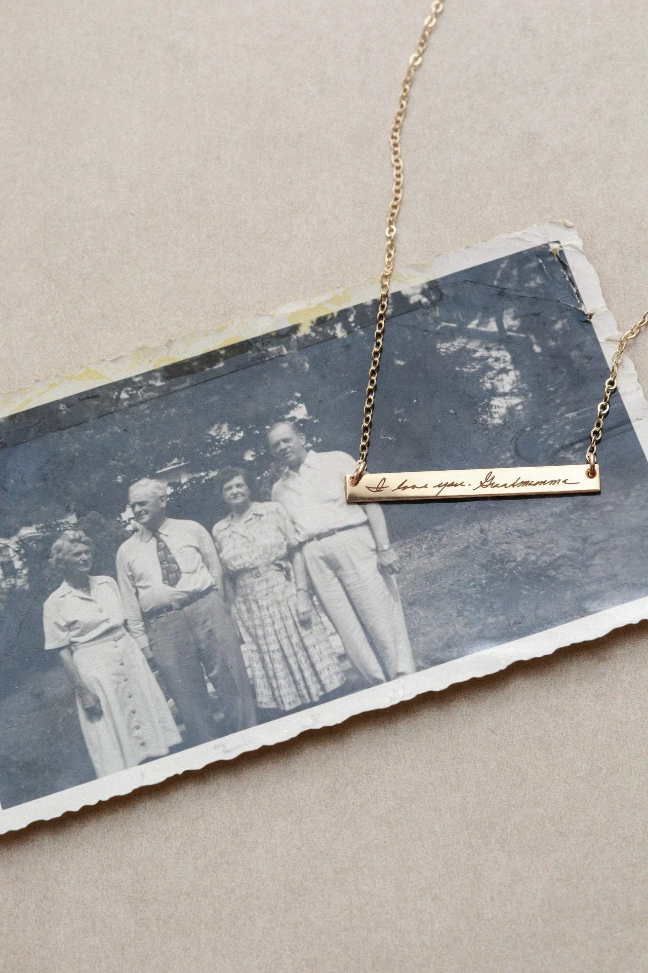 I ordered three necklaces for my sisters and I. The bracelets had our maiden name on it, in our father’s handwriting, and made for a great wedding gift! They are amazing quality and shipping was SO fast! Thank you! Will definitely recommend this shop in the future.