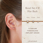 Our Threadless Flat Backs are made with ASTM F136 implant-grade titanium. Made for the most sensitive ears, hypoallergenic and waterproof. Push pin style stud backs are inserted through the back of the ear, the top is tension set into place from the front with a slightly bent pin. See instruction photo for details.