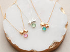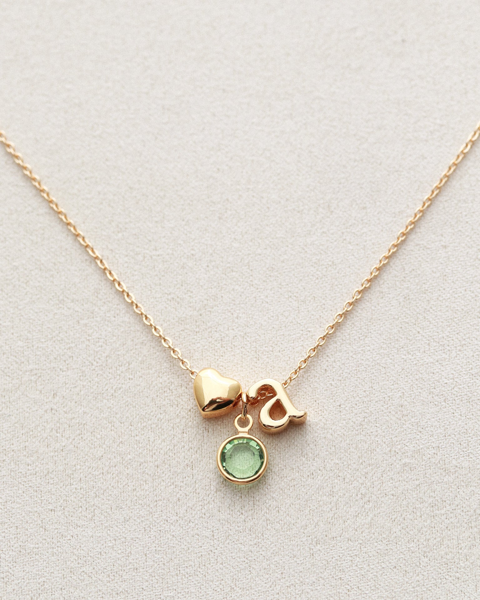 Our letters paired with a cubic zirconia birthstone charm and either a heart, flower, or star charm.