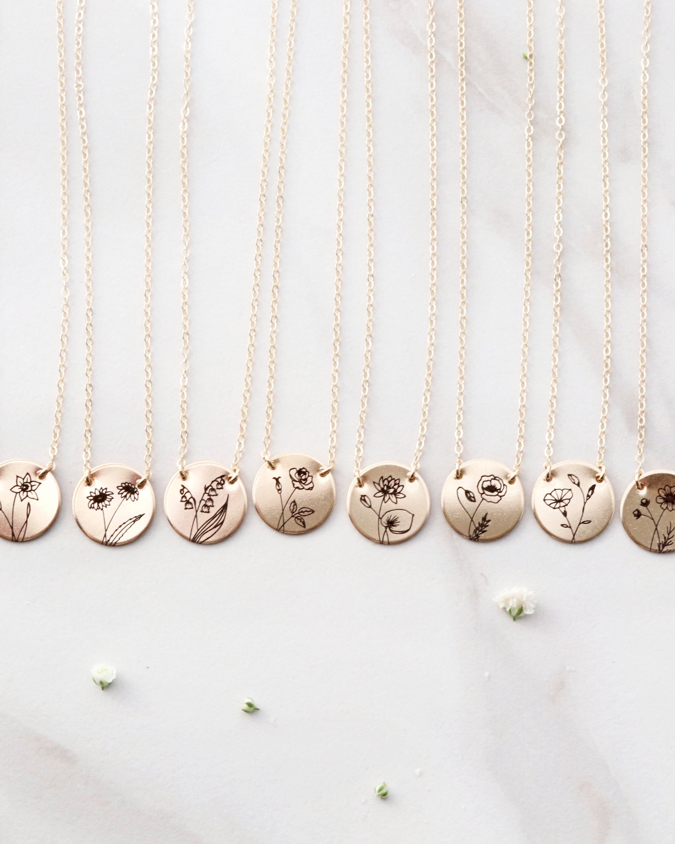 A meaningful, minimalist piece engraved with a special birth month flower. Each delicate disc features a tiny, detailed bloom, created to celebrate your story or someone you love.