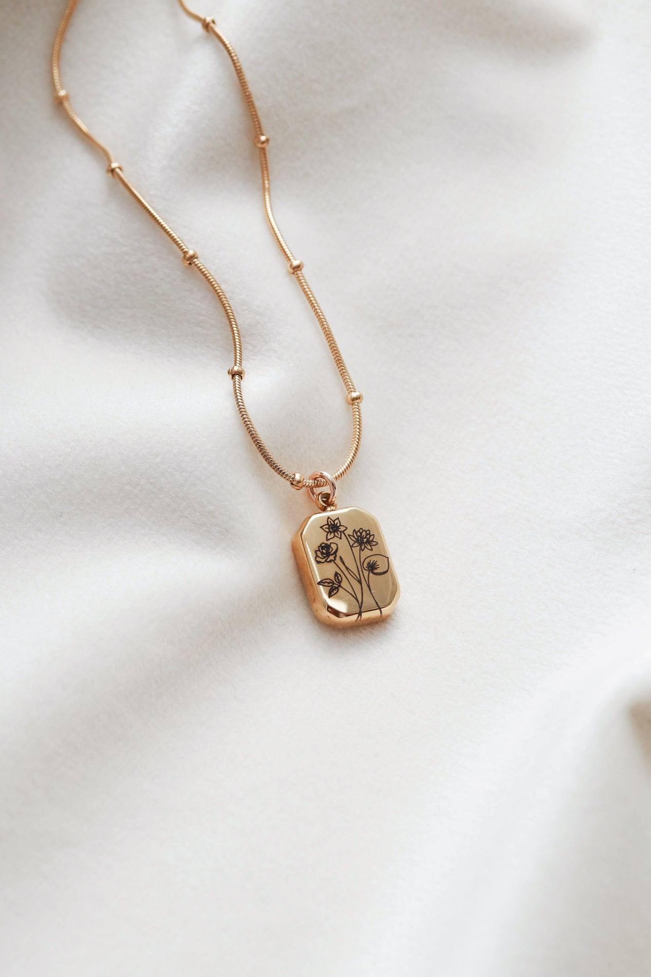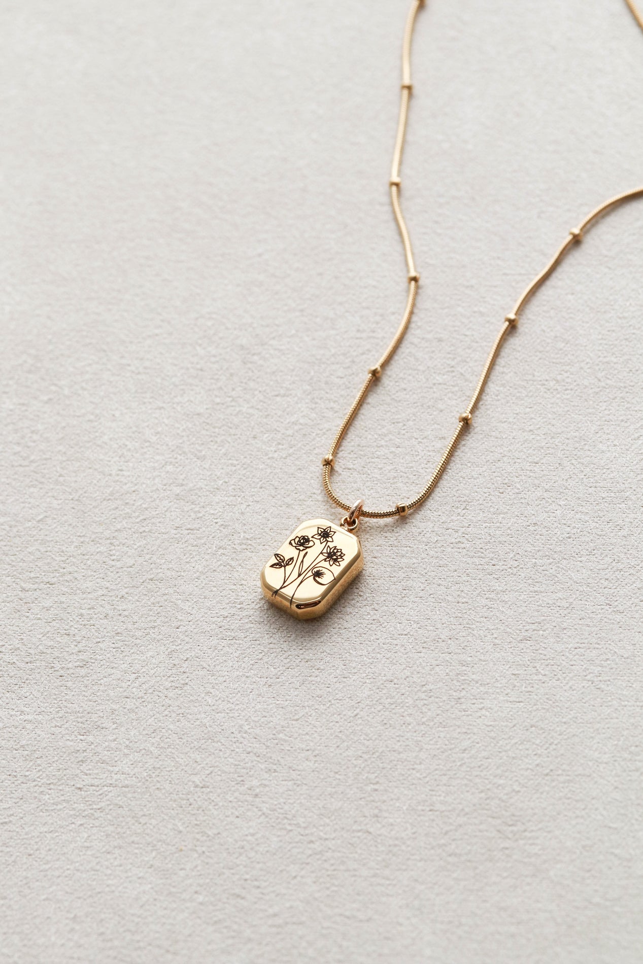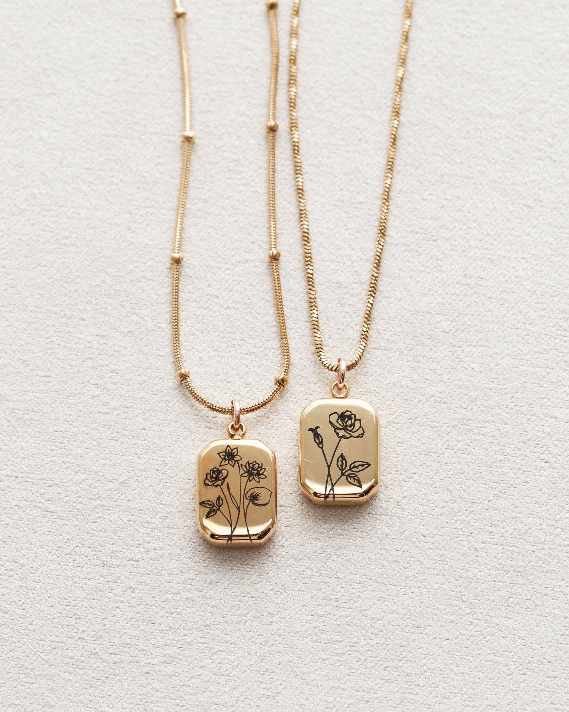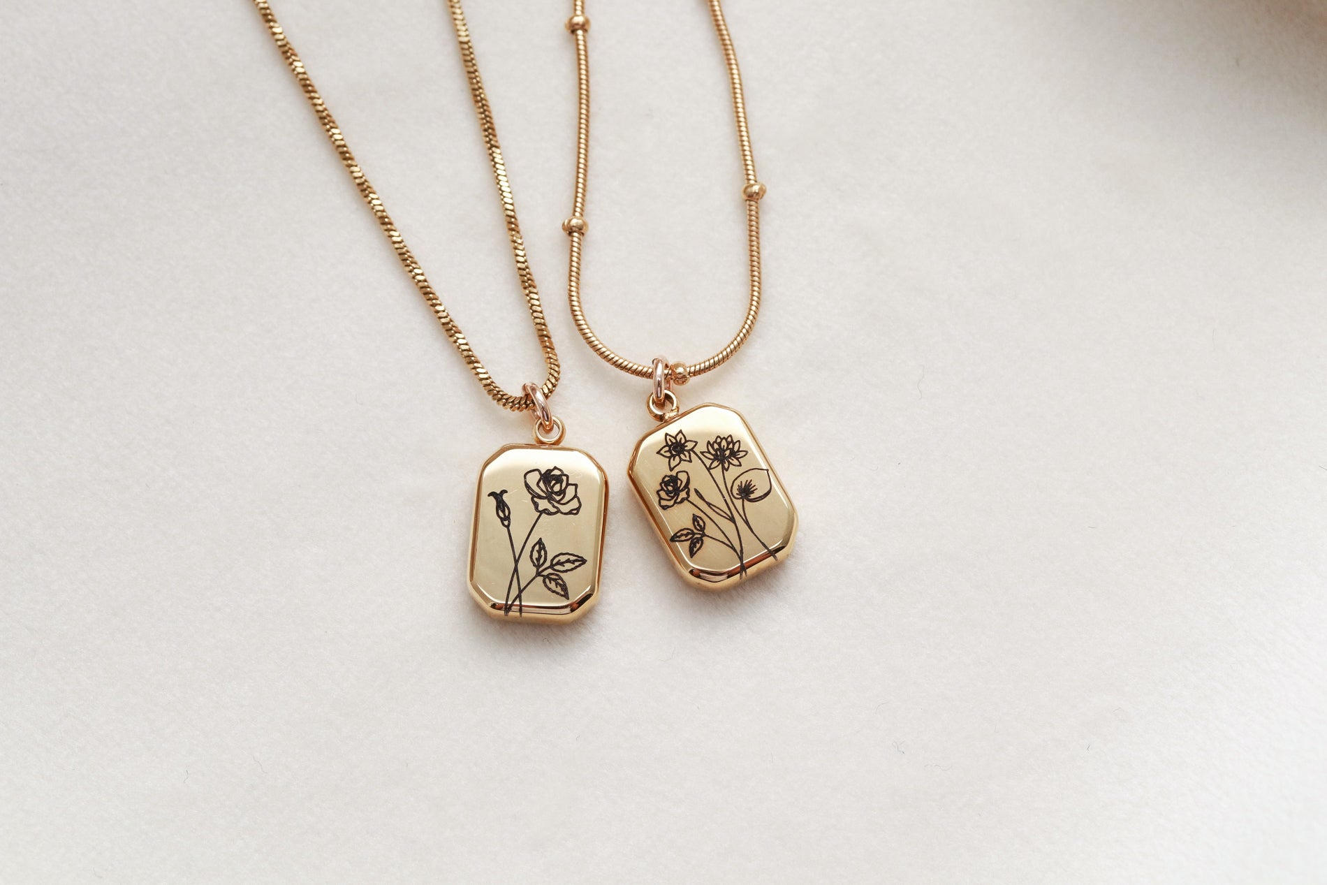 Our Birth Flower Necklace features an engraved birth month flower pendant on a modern gold octagon charm. Choose a single bloom or create a custom bouquet with multiple flowers. Perfect for moms, children’s birth months, or meaningful floral jewelry.