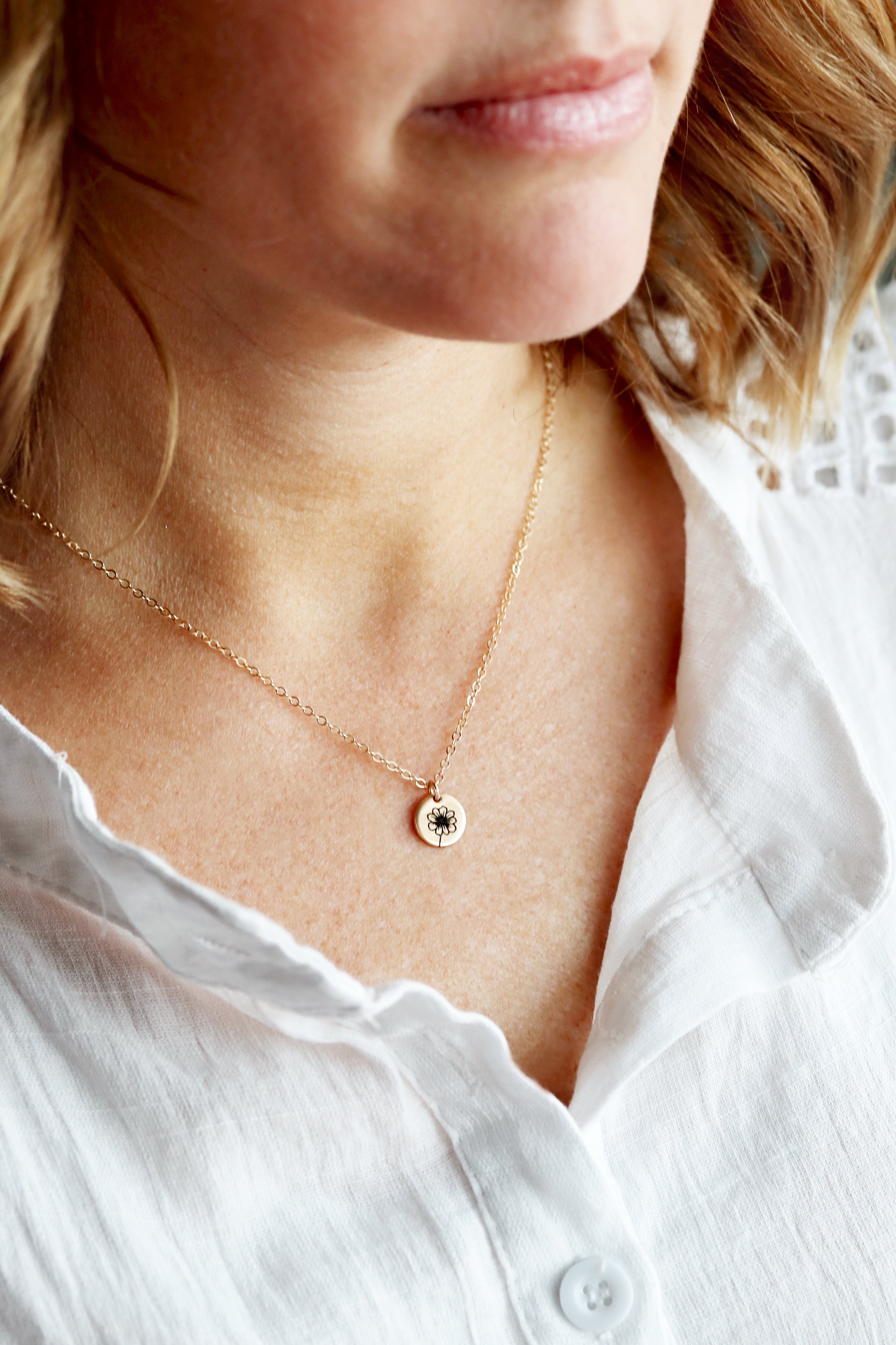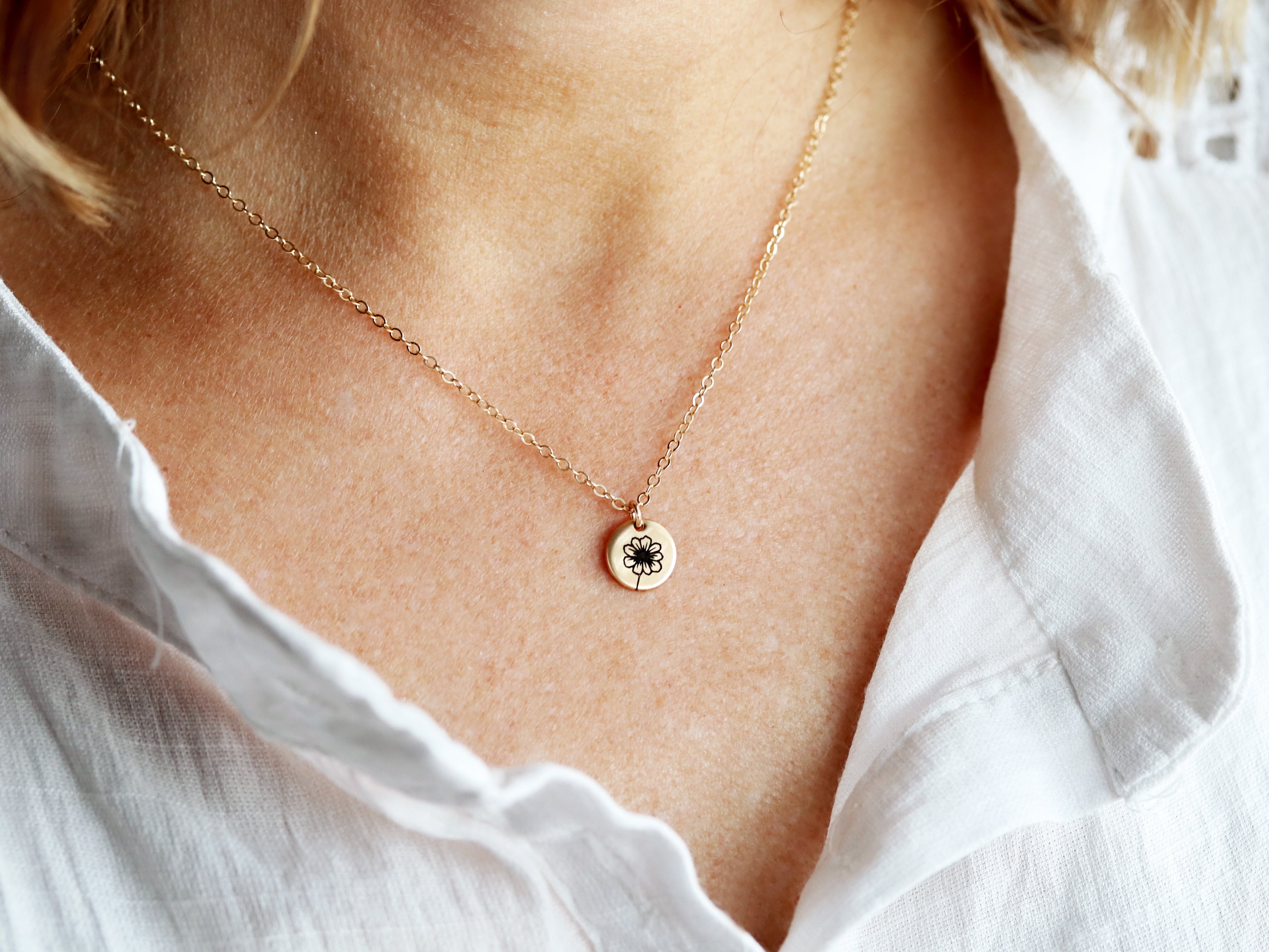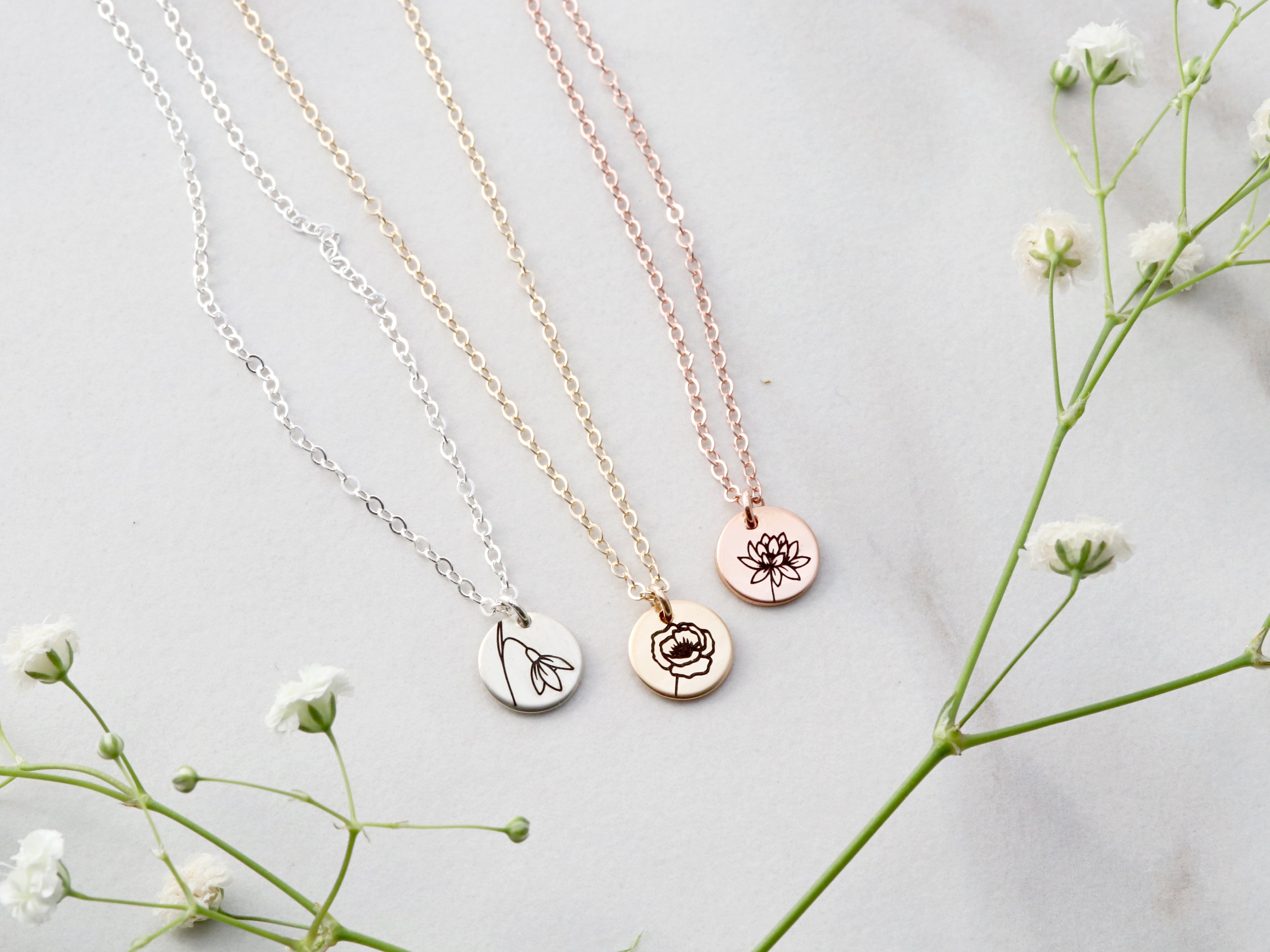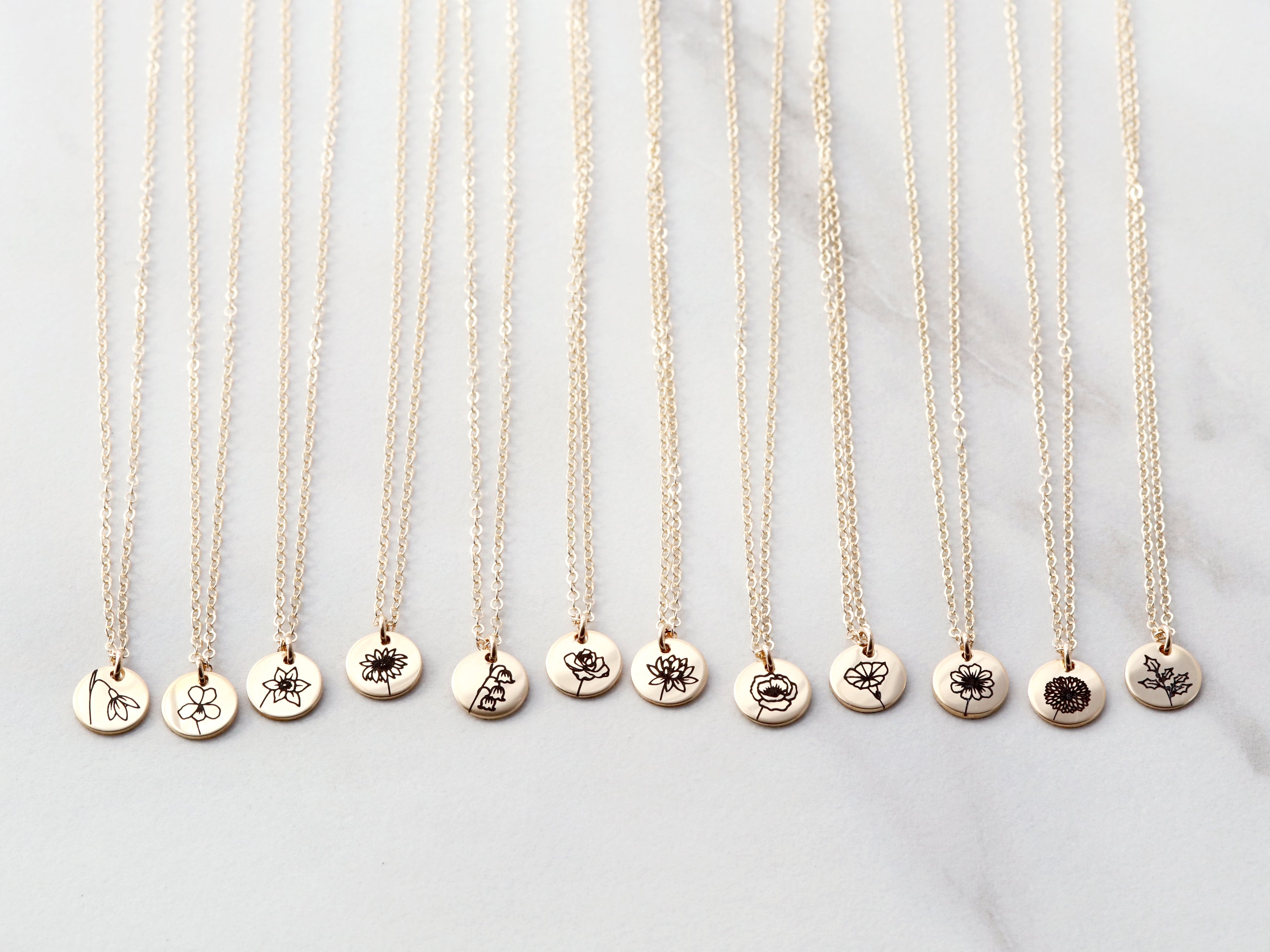 Small, simple, and full of meaning. Our tiny 3/8″ disc is engraved with a birth month flower of your choice - delicate, detailed, and perfect for everyday wear.