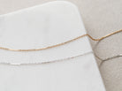 Our Bar Chain is made up flattened chain "bars" and cable links, a thin weight chain that looks great alone, or with other layering chains. Add a texture chain like our paperclip, heart, or disc for the perfect stack.