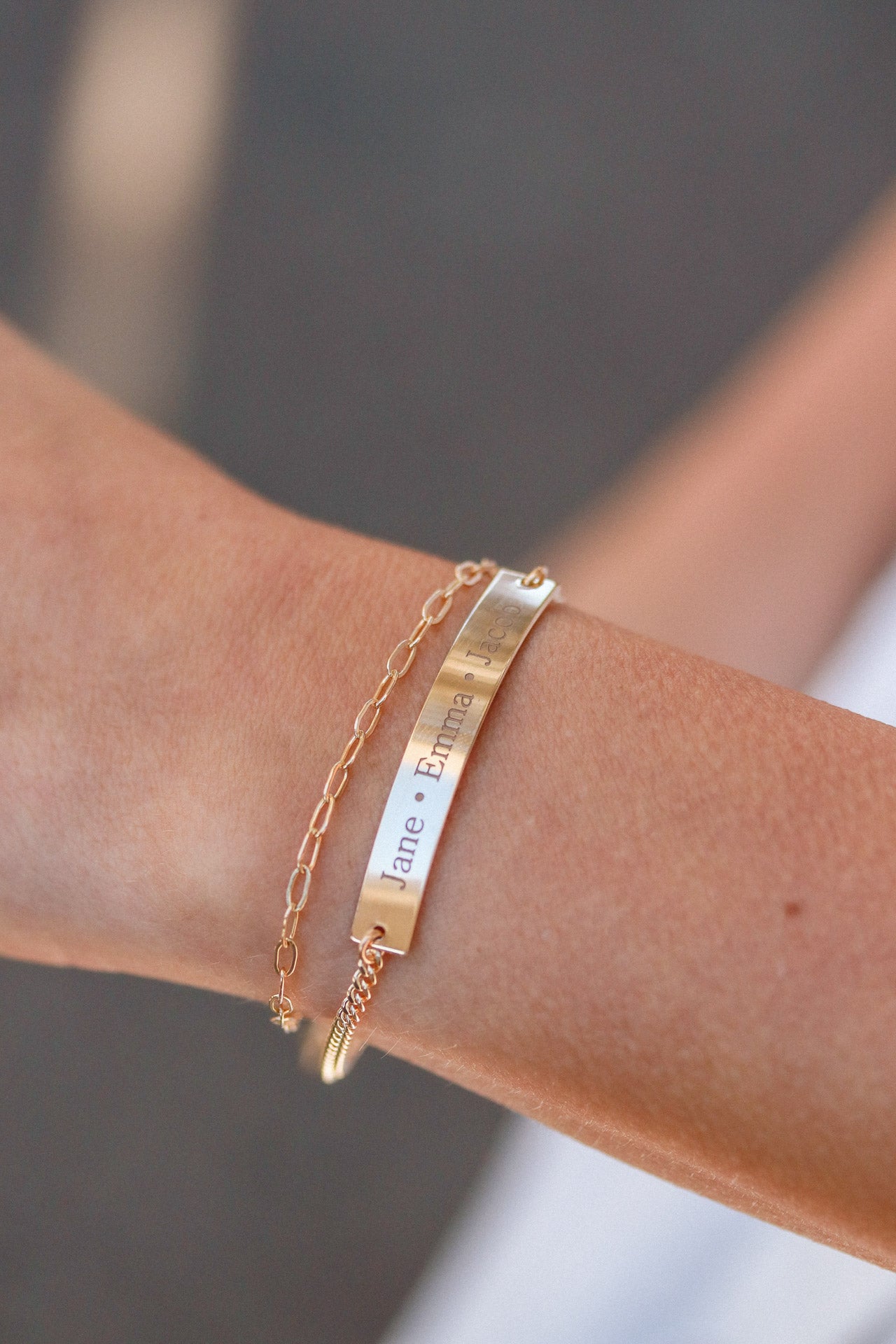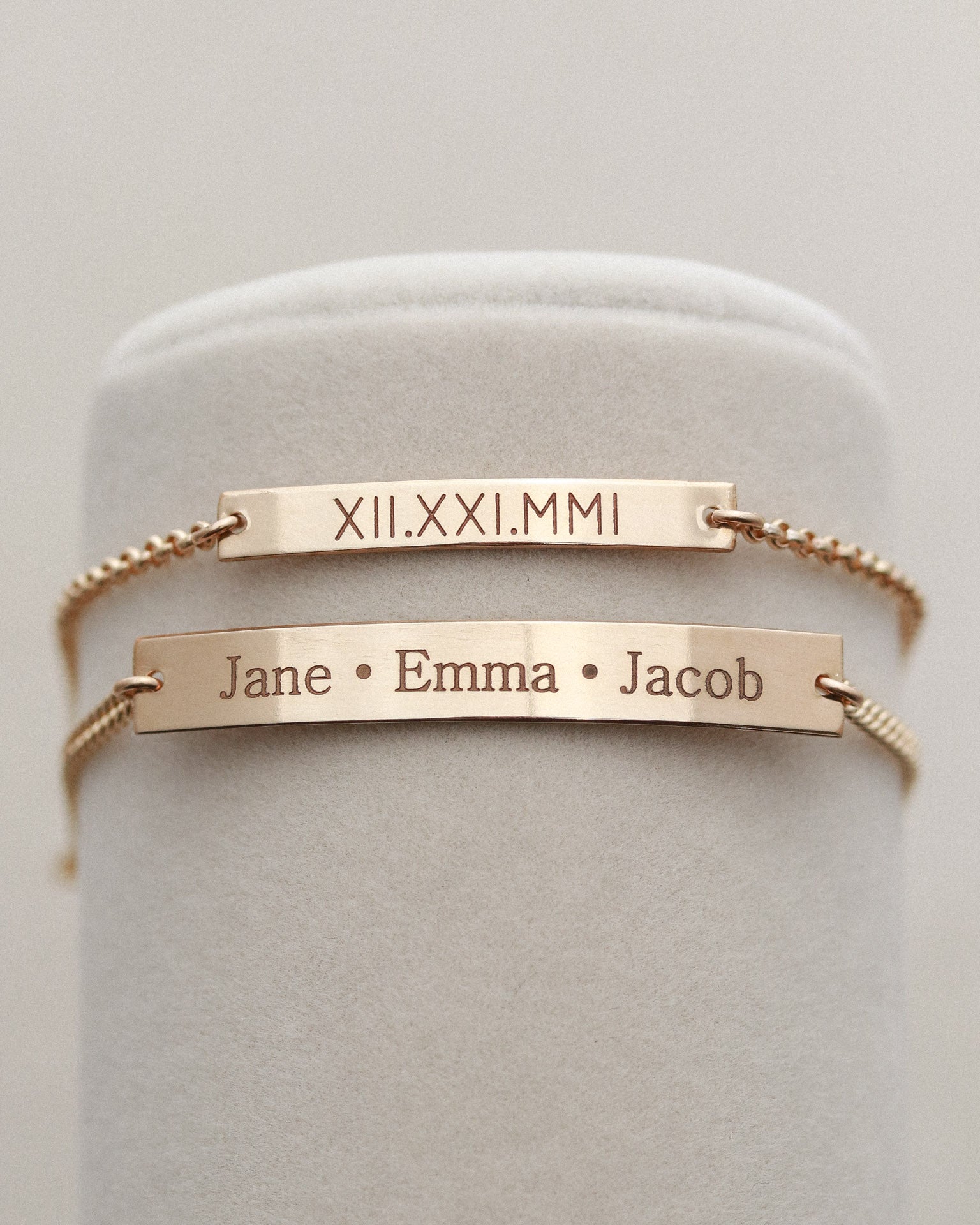 A timeless everyday bracelet, personalized just for you. Choose a thin or thick bar and engrave it with a name, date, coordinates, or words that mean something special.