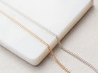 Our Curb Chain is made up of elongated, hammered links that shimmer in the light. All 14k gold filled or sterling silver materials connecting with a lobster clasp. This medium weight chain looks beautiful alone, or makes a great layering piece. Add a texture chain like our paperclip, heart, or figaro for a layered look.