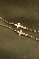 • Text is engraved at the end of the cross; the cross hangs sideways when worn