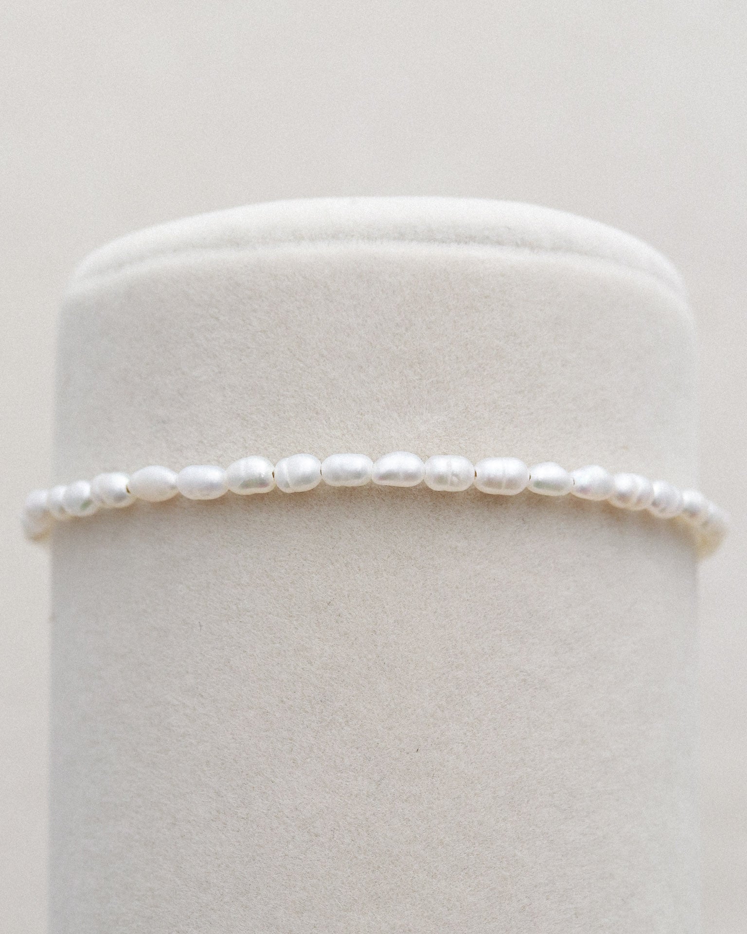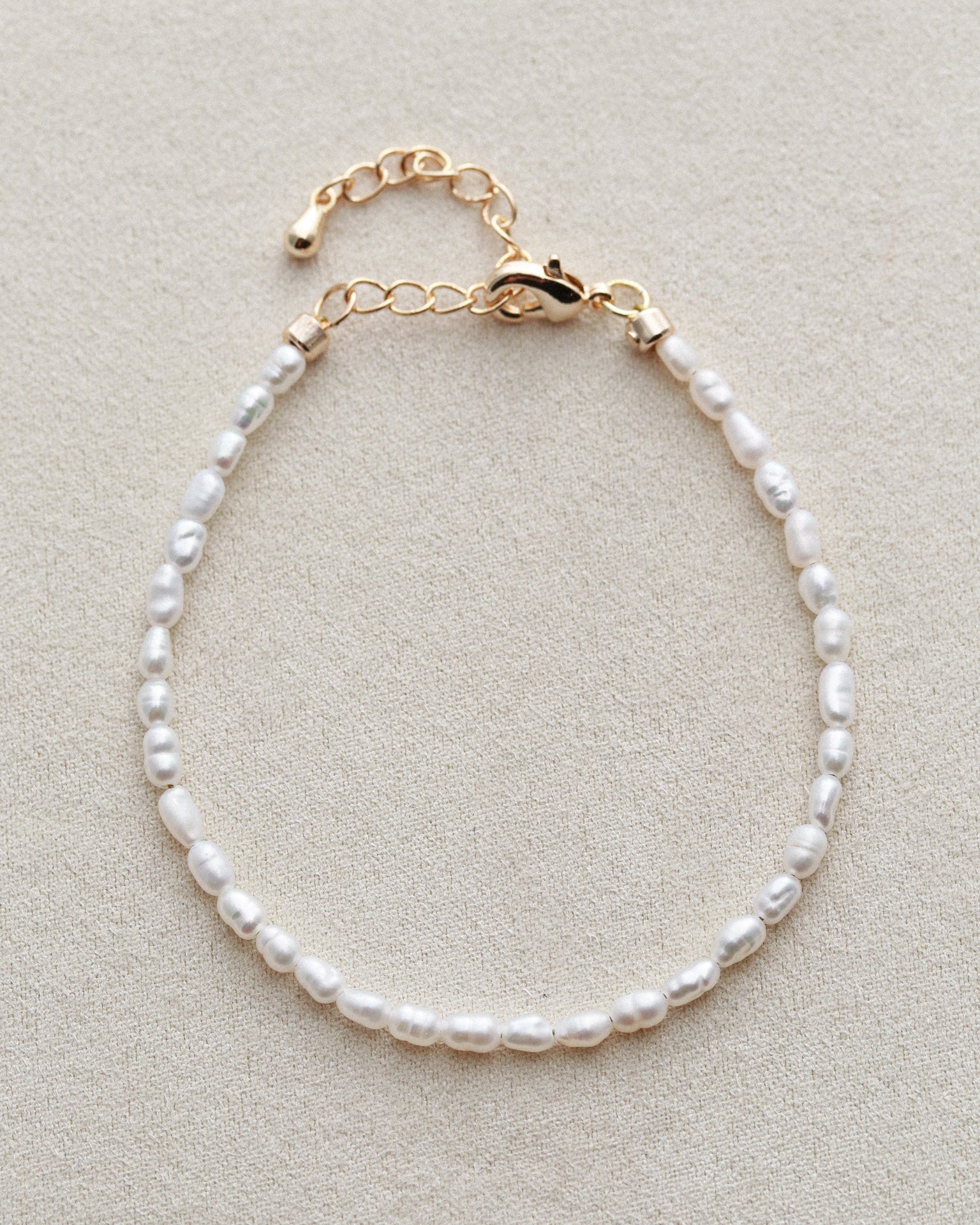 Freshwater pearls measure about 3-4mm long. Bracelet measures 6" long with a 1.5" adjustable ending and 18k gold plated lobster clasp.