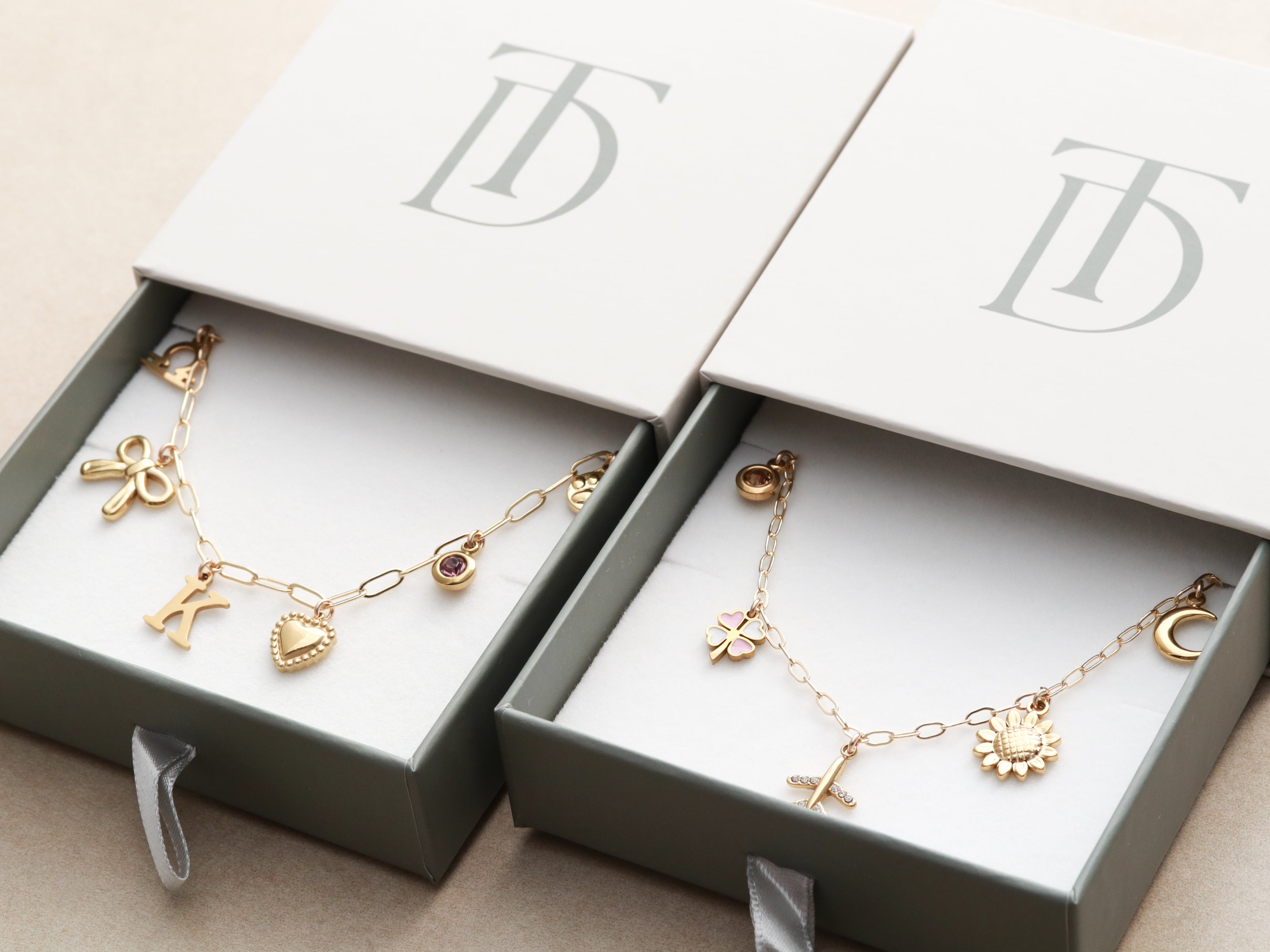 Select from over 70 charm shapes, including birthstones, letters, and zodiac symbols. Add or swap charms later to evolve your necklace over time.