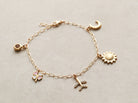 Our Traditional Charm Bracelet is crafted with a 14k gold-filled clip chain and adorned with 14k-18k gold-plated stainless steel charms, combining durability with timeless style. All materials are waterproof, anti-tarnish and made to last.