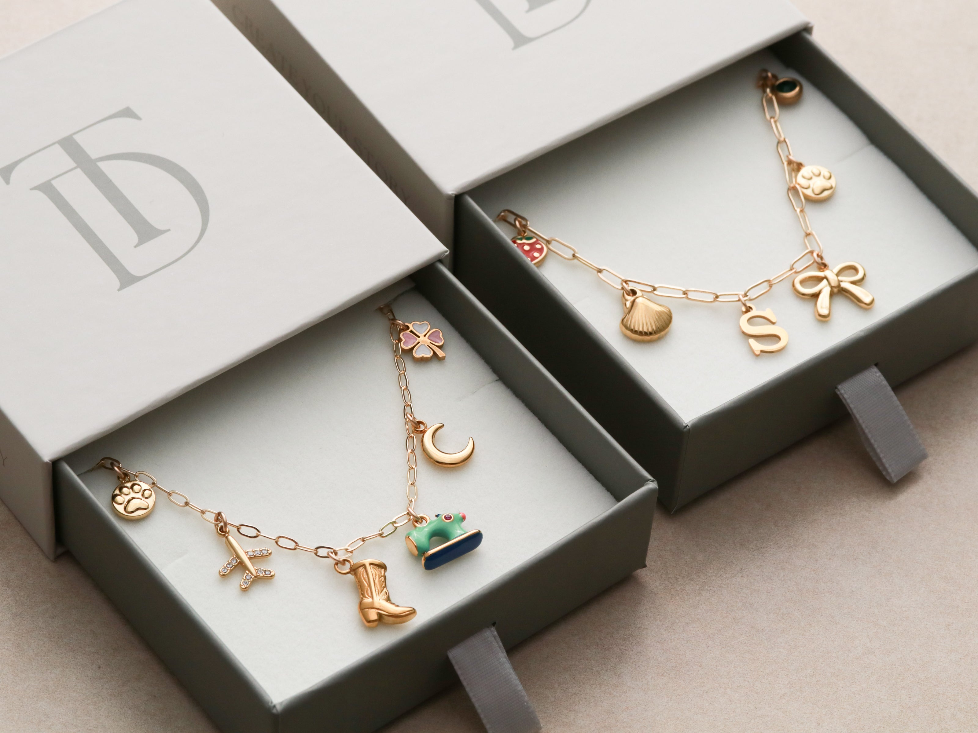 Create a piece that tells your story with custom charm necklaces and bracelets.