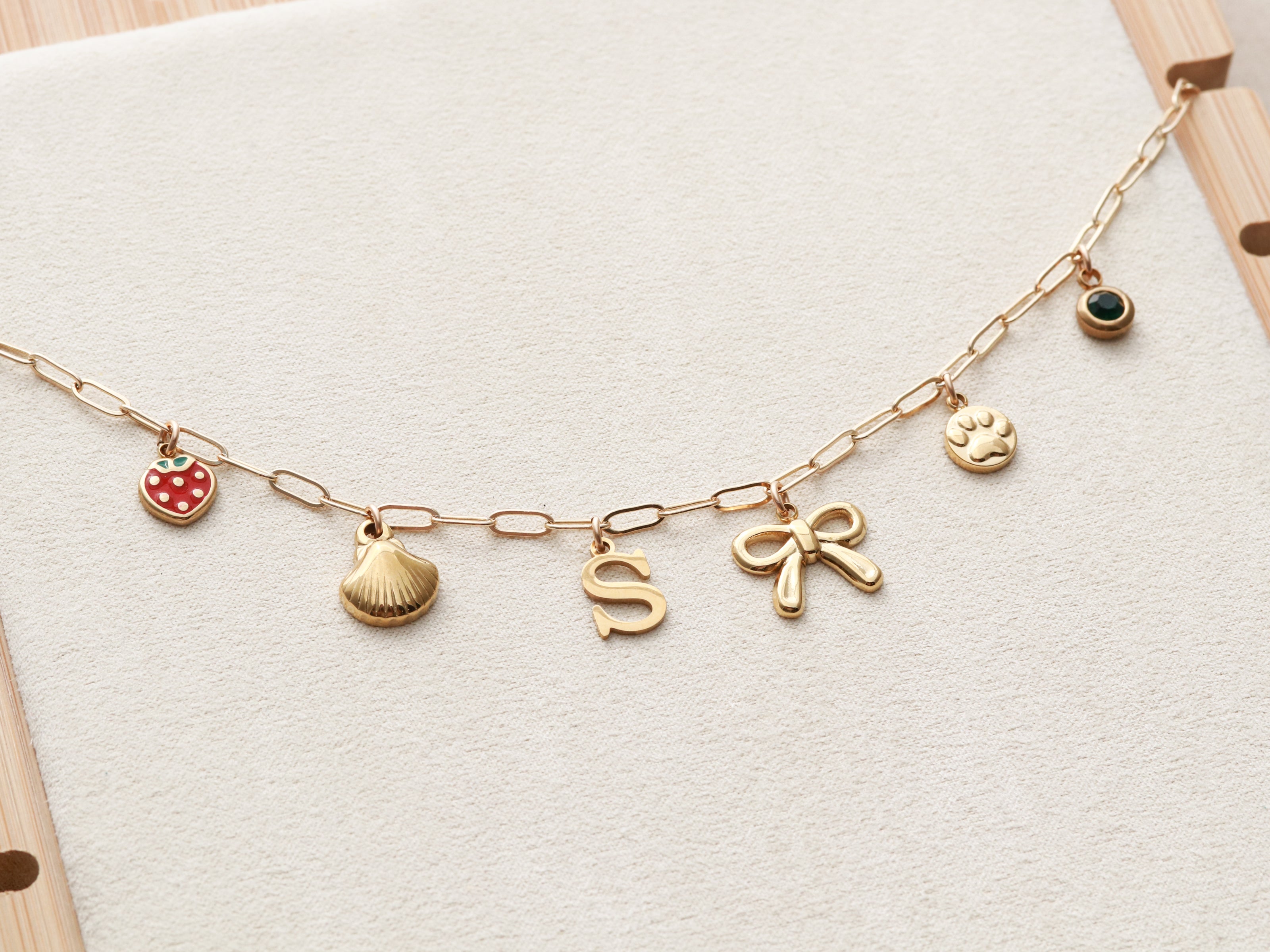 Select from over 70 charm shapes, including birthstones, letters, and zodiac symbols. Add or swap charms later to evolve your necklace over time.