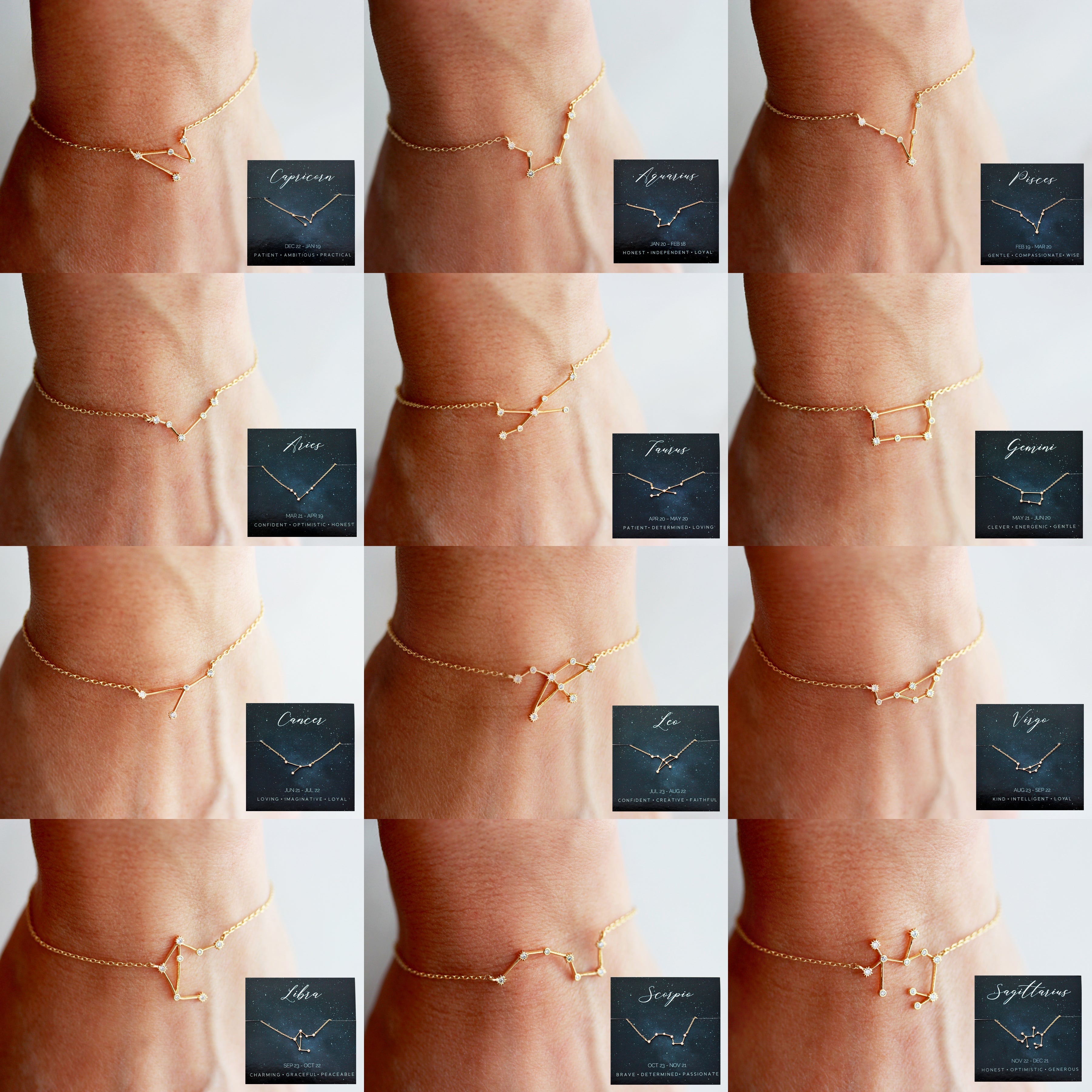 Each of our Zodiac Constellation Bracelets are made with a dainty constellation charm with tiny CZ crystals that sparkle in the light. Bracelets come packaged on our Zodiac Cards with the name and description of each zodiac.