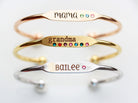 Engraved Flat Top Cuff Bracelet with Birthstones