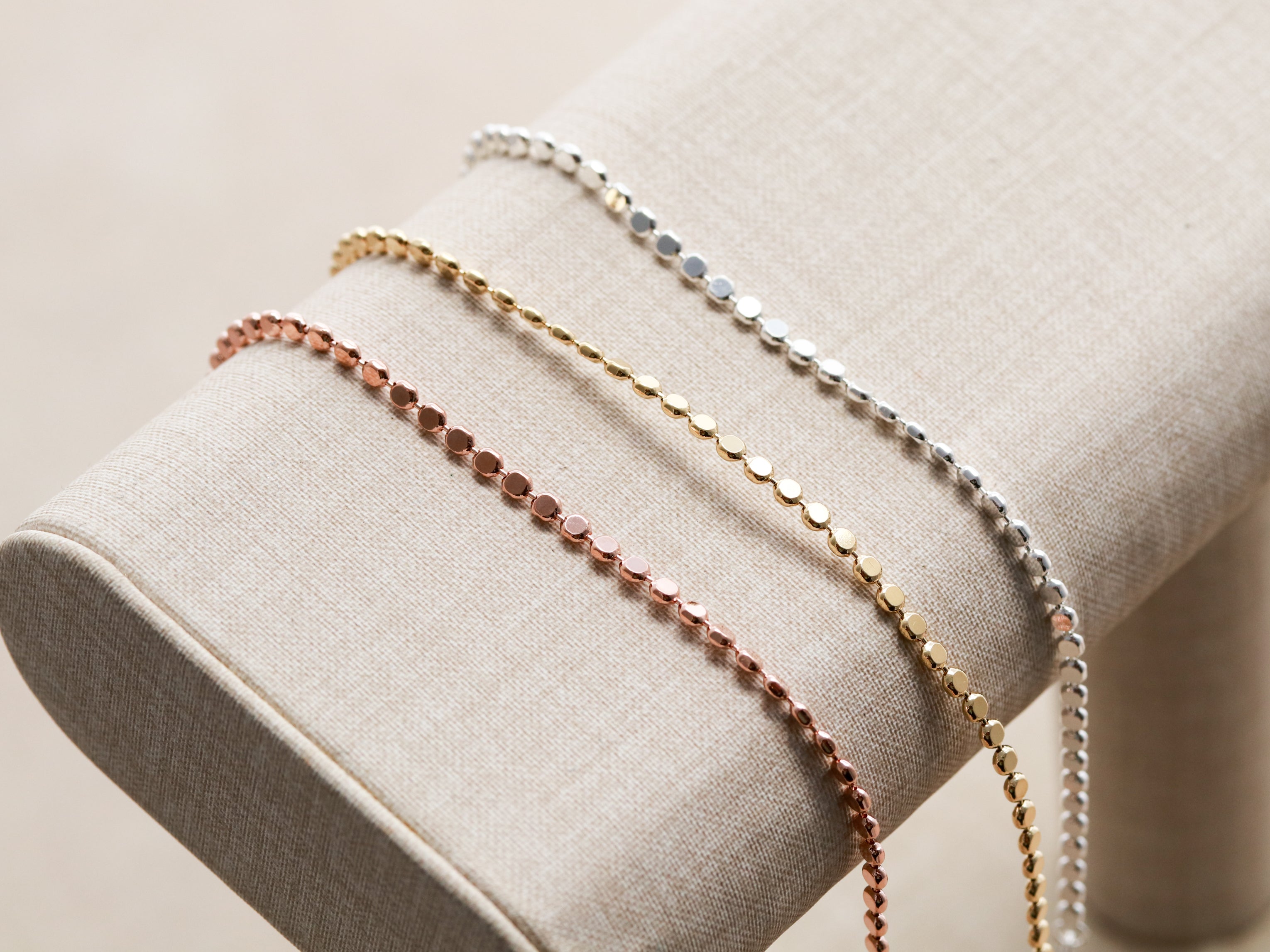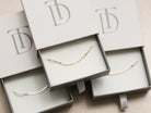 The Dot Bracelet is our #1 best seller in our shop! Made with a dainty, yet durable dotted chain which is great for layering with our other chains or initial bracelets. Our dot chain catches the light and adds a touch of sparkle to any outfit - day or night. Packaged in our logo stamped boxes, and perfect for gift giving.