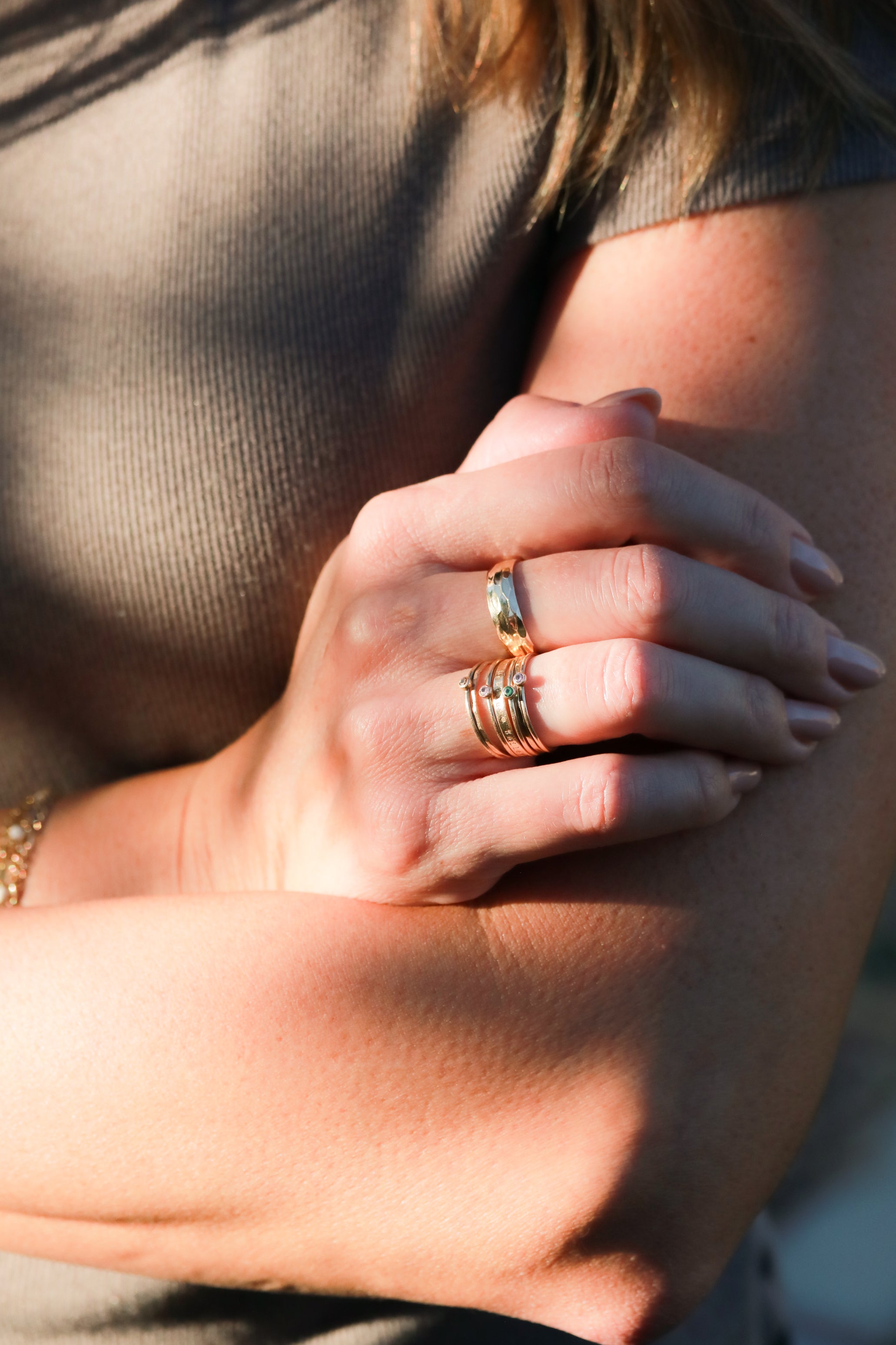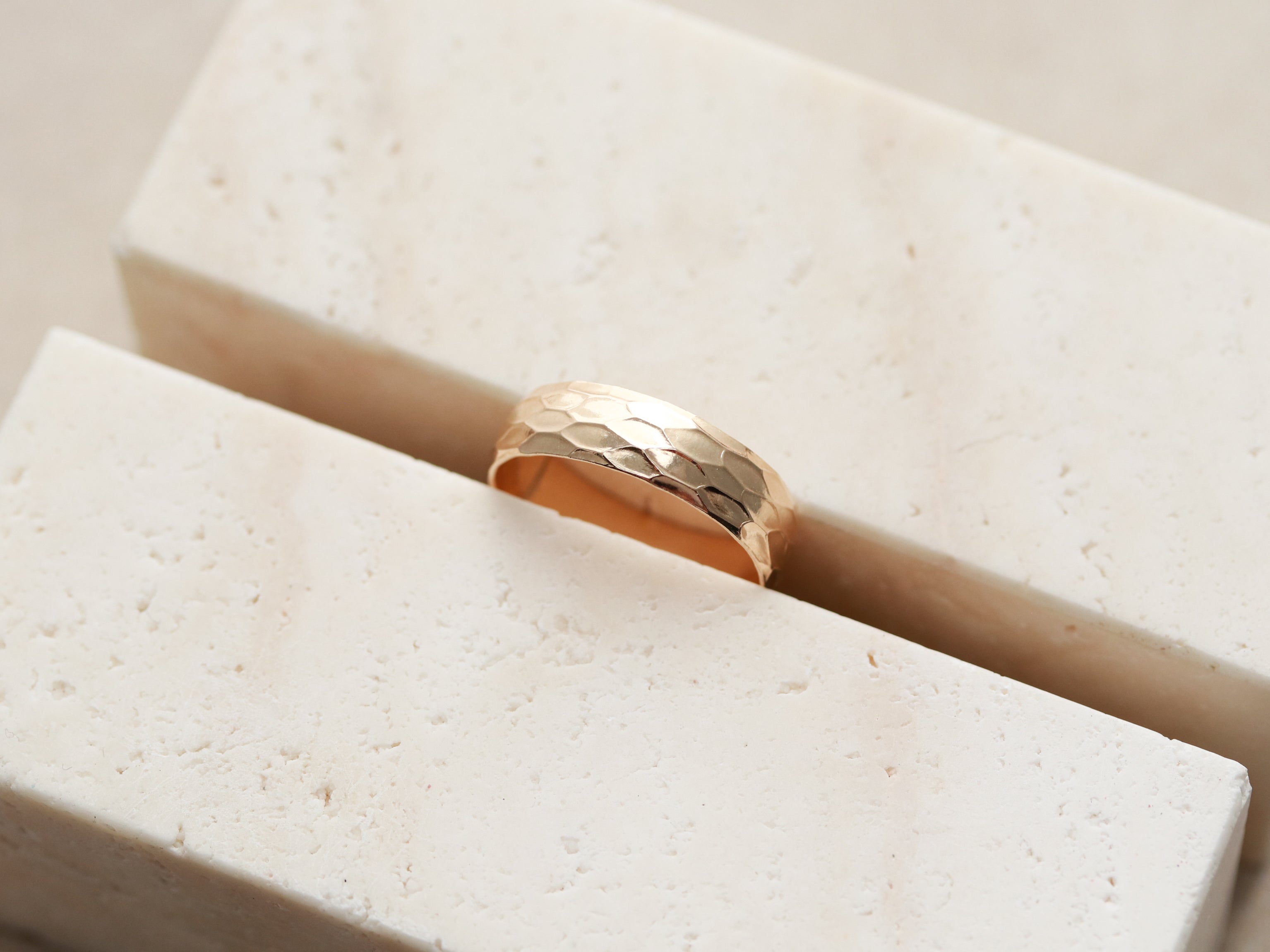 Make a subtle statement with our Snakeskin Ring. This bold yet refined band features a unique textured pattern that catches the light from every angle creating a perfect blend of edge and elegance. Wear it solo or stack it with your favorite rings for a modern, layered look.