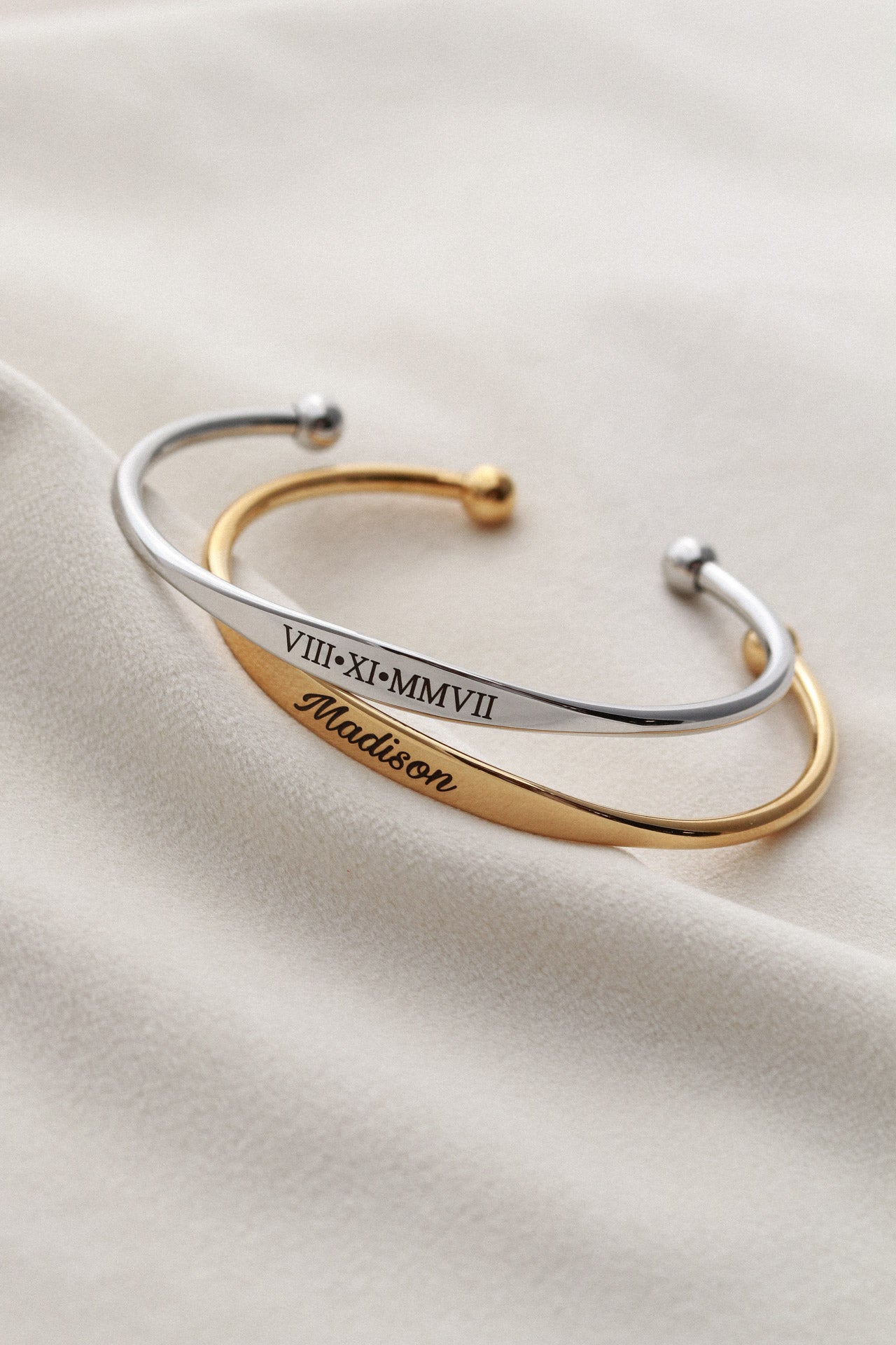 Our Tapered Cuff is a timeless cuff bracelet, engraved just for you. This personalized piece is designed to be worn every day with subtle, meaningful words engraved and made to hold what matters most.