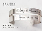 Our thin cuff can be engraved with an inspirational message, saying, quote, song line, scripture, names, dates, or coordinates for the perfect personalized gift!