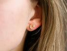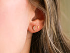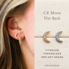 Our Threadless Flat Backs are made with ASTM F136 implant-grade titanium. Made for the most sensitive ears, hypoallergenic and waterproof. Push pin style stud backs are inserted through the back of the ear, the top is tension set into place from the front with a slightly bent pin. See instruction photo for details.