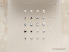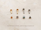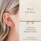Our Threadless Flat Backs are made with ASTM F136 implant-grade titanium. Made for the most sensitive ears, hypoallergenic and waterproof. Push pin style stud backs are inserted through the back of the ear, the top is tension set into place from the front with a slightly bent pin. See instruction photo for details.