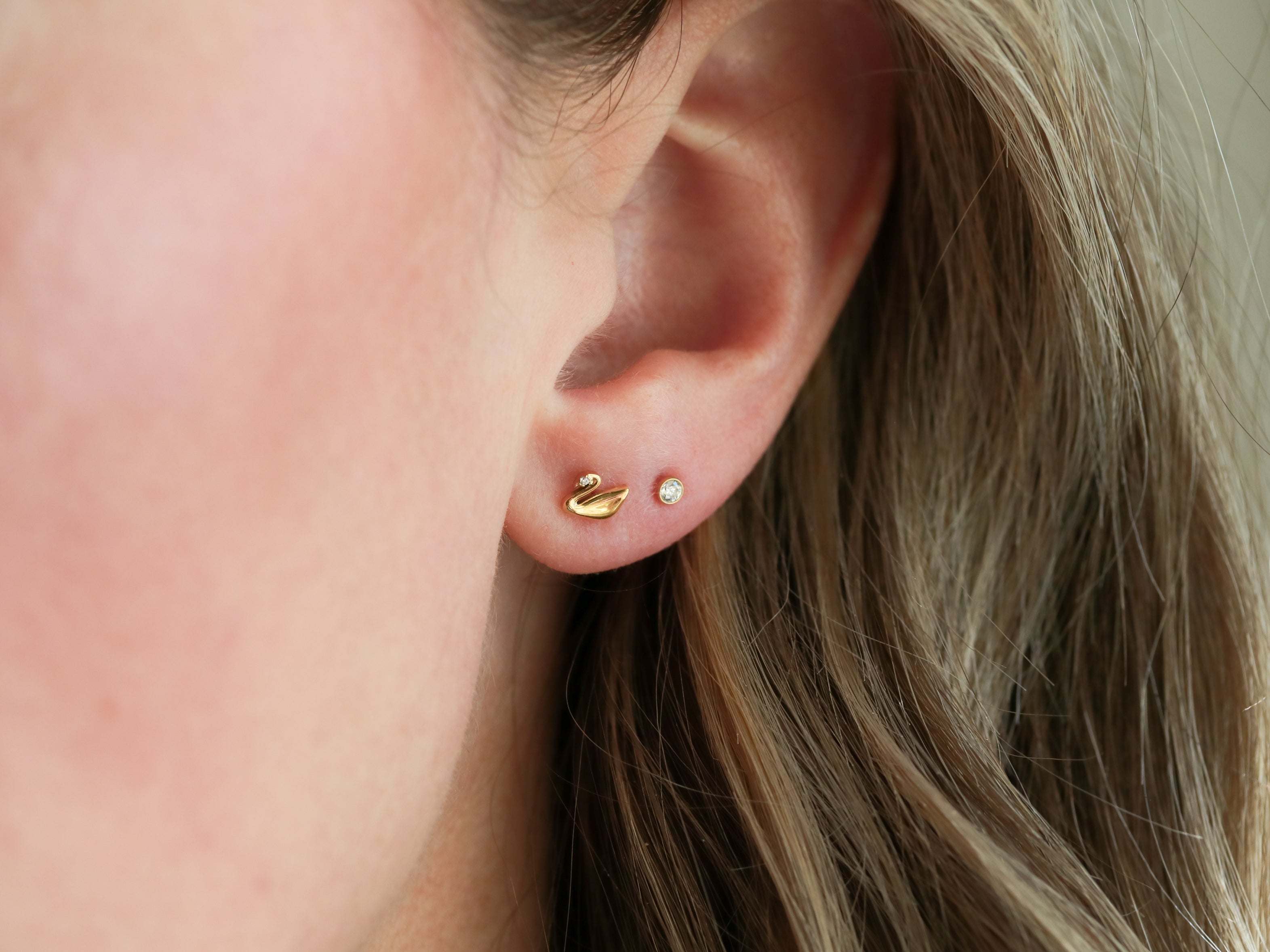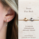 Our Threadless Flat Backs are made with ASTM F136 implant-grade titanium. Made for the most sensitive ears, hypoallergenic and waterproof. Push pin style stud backs are inserted through the back of the ear, the top is tension set into place from the front with a slightly bent pin. See instruction photo for details.