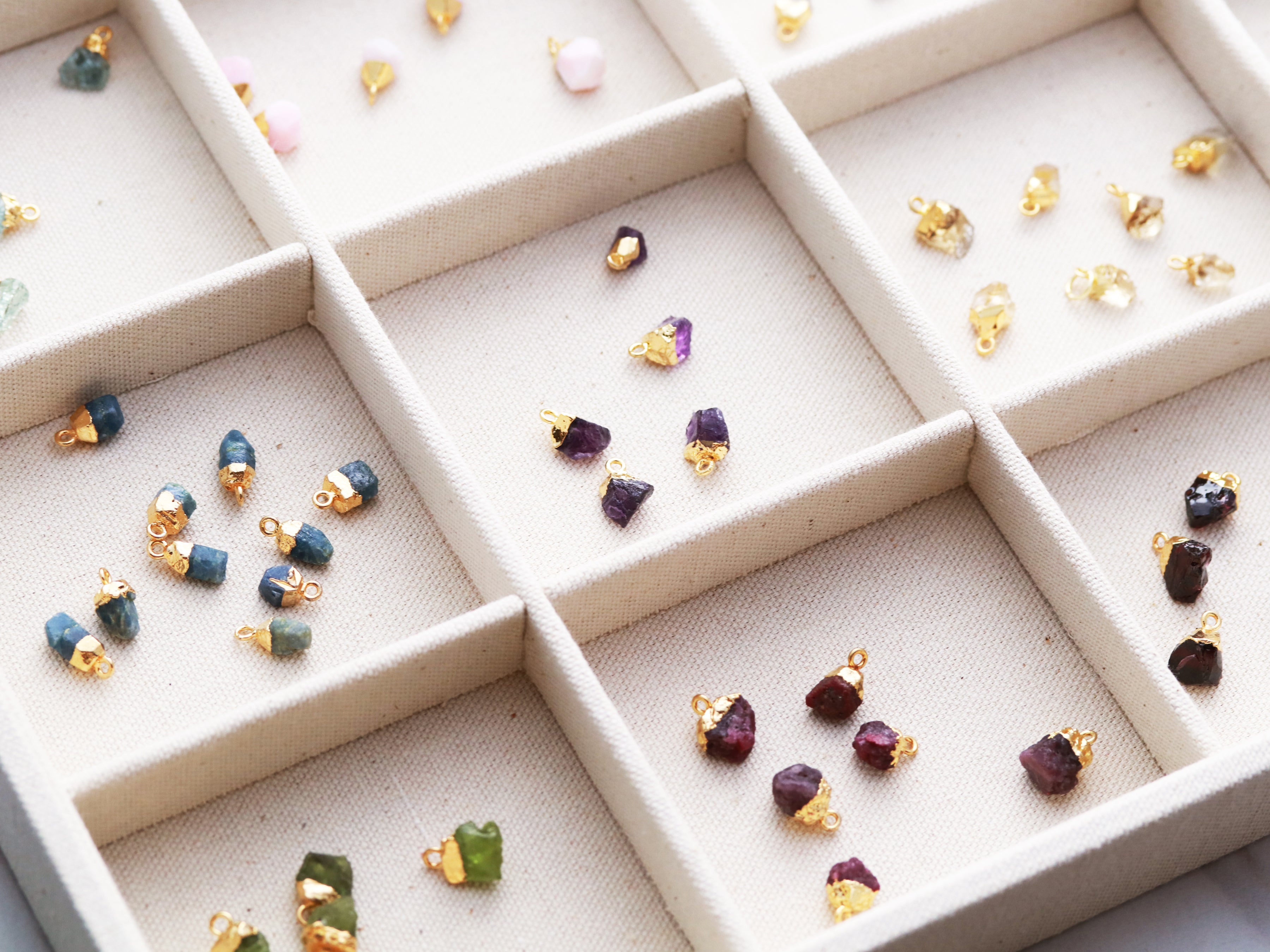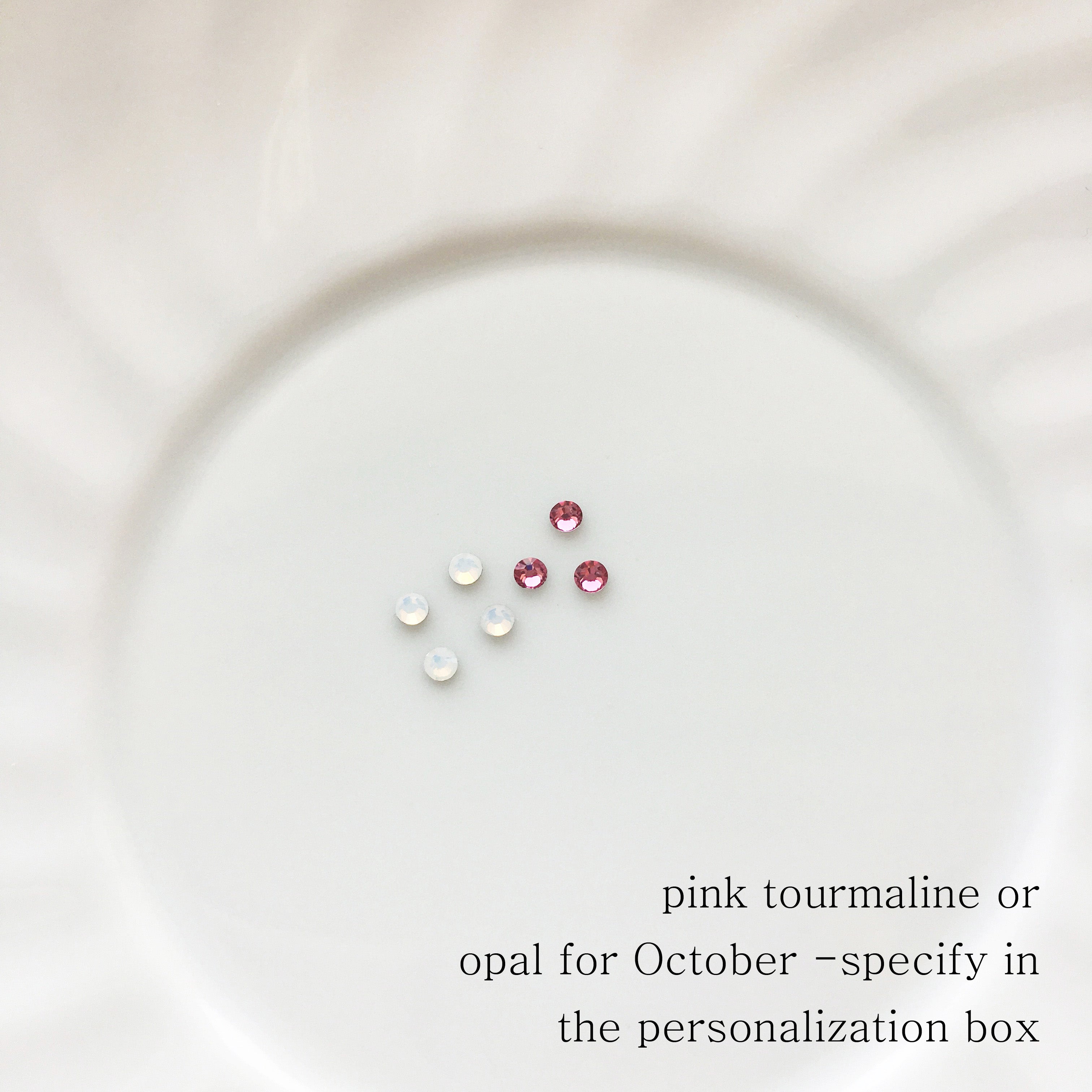 Garnet - January Amethyst - February Aquamarine - March Herkimer Diamond - April Emerald - May Moonstone - June Ruby - July Peridot - August Sapphire - September Pink Opal - October Rose Quartz - October Citrine - November Turquoise - December Carnelian - Autumn + 11 more